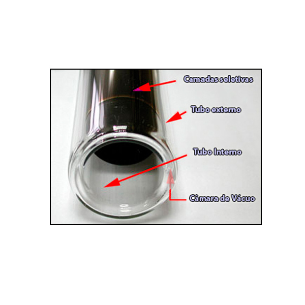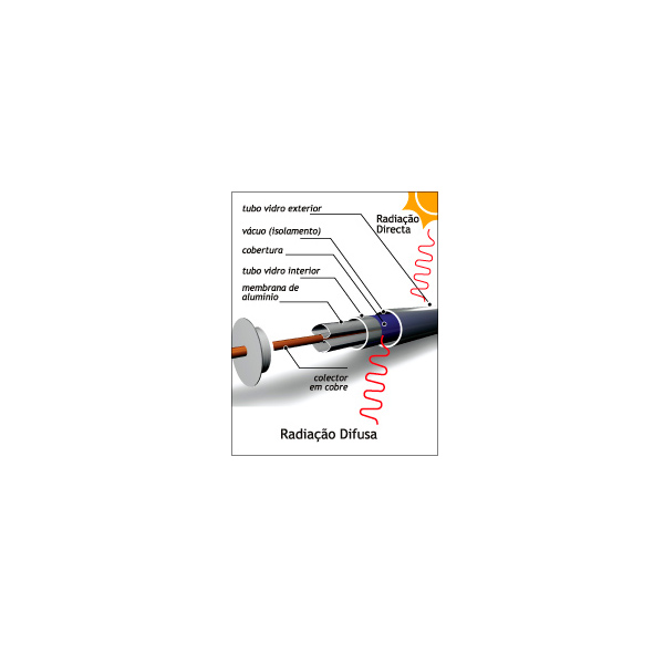 Os painéis de tubos de vácuo são constituídos por tubos de vidro de parede dupla com vácuo entre elas e um tubo de cobre que se encontra dentro do tubo de vidro e a sua parede está coberta de nitrato de alumínio, material com excelente condução de temperatura.